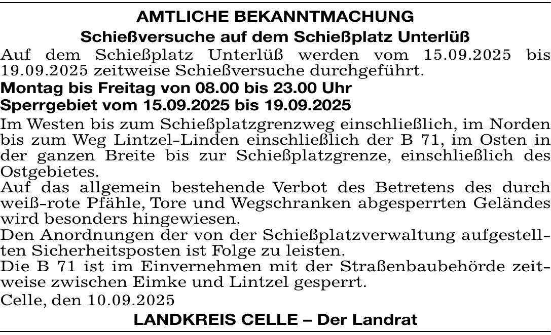 Anzeige vom 12.9.2025 in der Rubrik "Amtliche Bekanntmachungen"