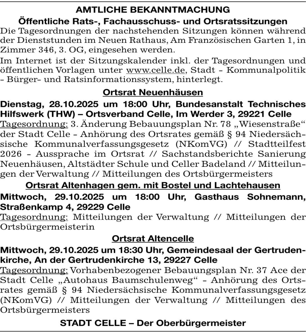 der Stadt Celle - Anhörung des Ortsrates gemäß § 94 Niedersäch-