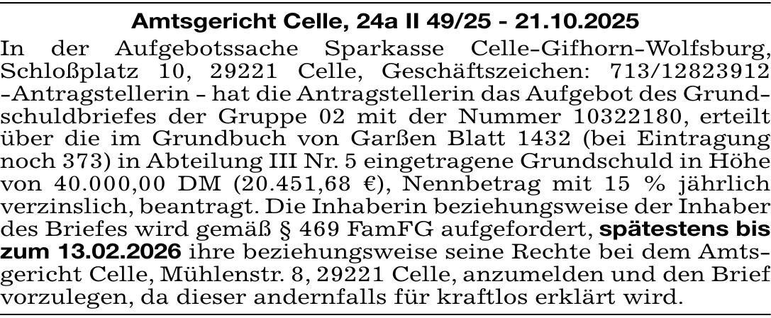 Amtsgericht Celle, 24a II 49/25 - 21.10.2025