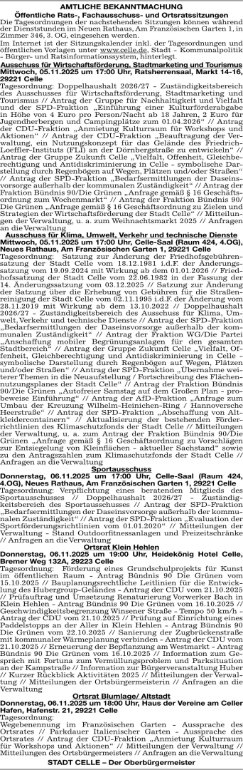 Erscheinungsdatum: Anzeige vom 1.11.2025 in der Rubrik "Amtliche Bekanntmachungen"