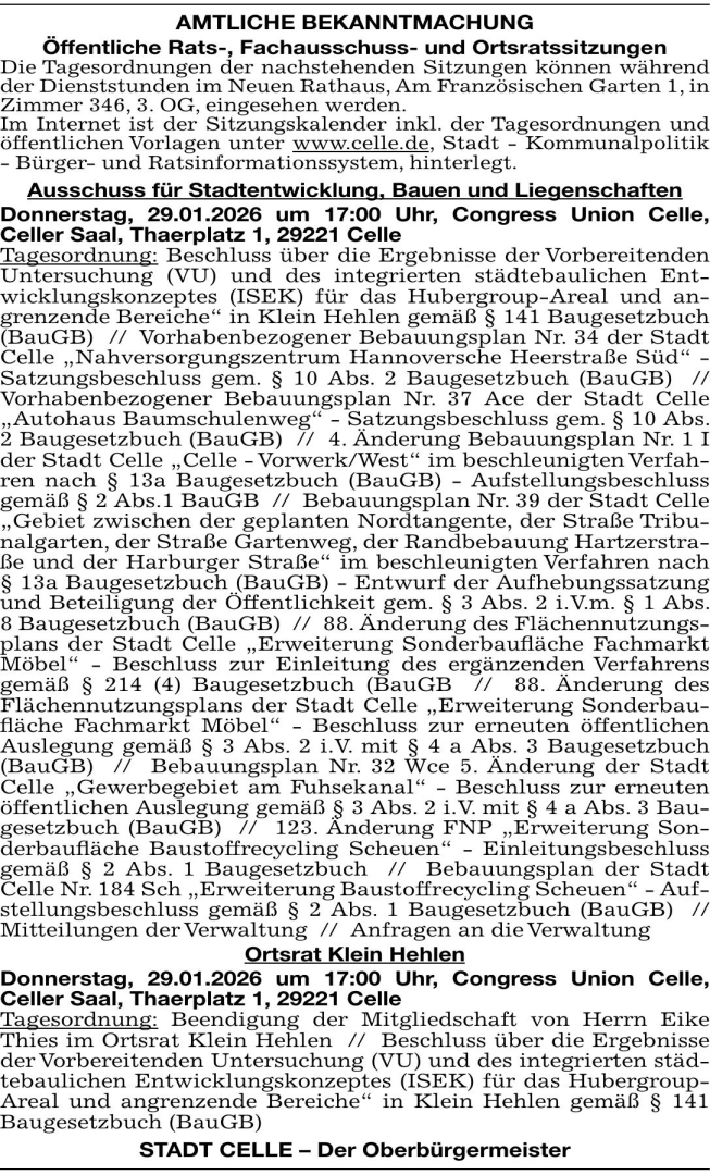 Anzeige vom 24.1.2026 in der Rubrik "Amtliche Bekanntmachungen"