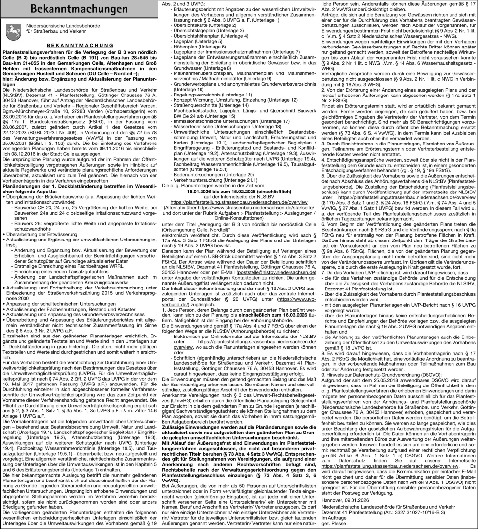 det nach Abschluss des Anhörungsverfahrens die NLStBV (Planfeststel-