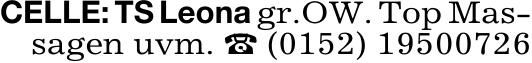 CELLE: TS Leona gr.OW. Top Mas-sagen uvm. ☎ (0152) 19500726