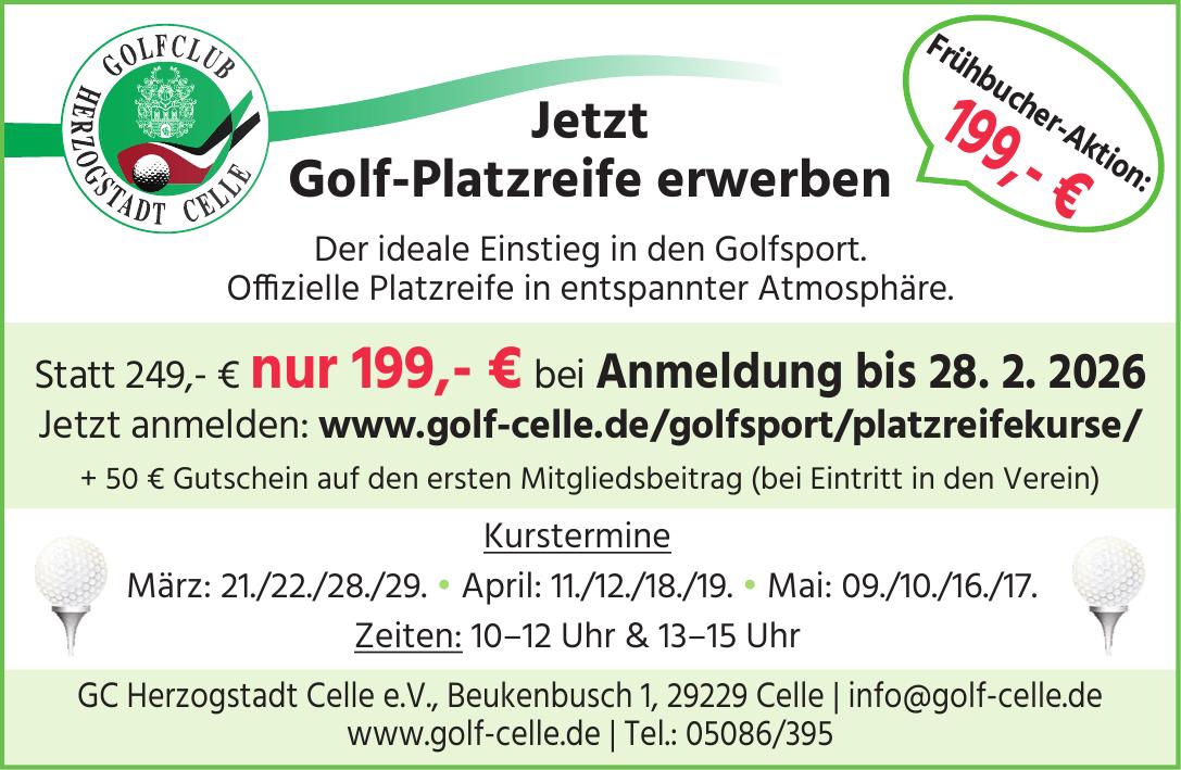 Jetzt anmelden: www.golf-celle.de/golfsport/platzreifekurse/