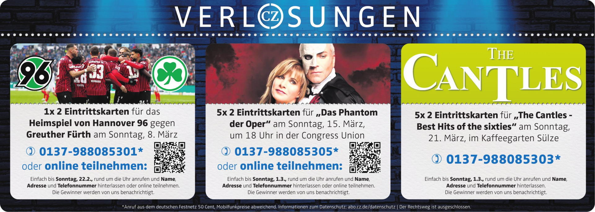 *Anruf aus dem deutschen Festnetz 50 Cent, Mobilfunkpreise abweichend. Informationen zum Datenschutz: abo.cz.de/datenschutz | Der Rechtsweg ist ausgeschlossen.