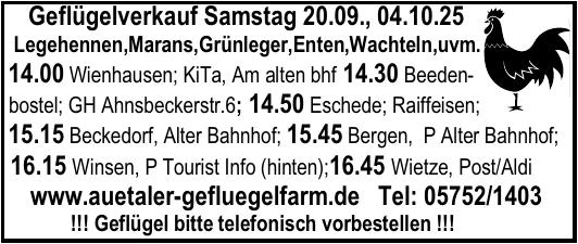 www.auetaler-gefluegelfarm.de Tel: 05752/1403