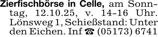 Erscheinungsdatum: Anzeige vom 4.10.2025 in der Rubrik "Tiermarkt"
