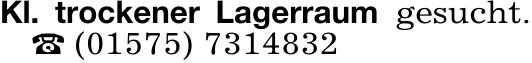 KI. trockener Lagerraum gesucht.☎ (01575) 7314832