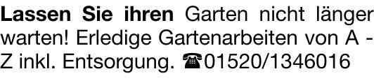 Lassen Sie ihren Garten nicht längerwarten! Erledige Gartenarbeiten von A -
