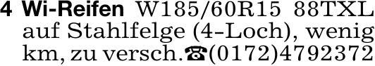 4 Wi-Reifen W185/60R15 88TXLauf Stahlfelge (4-Loch), wenig