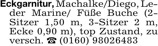 Eckgarnitur, Machalke/Diego, Le-der Marine/ Füße Buche (2-