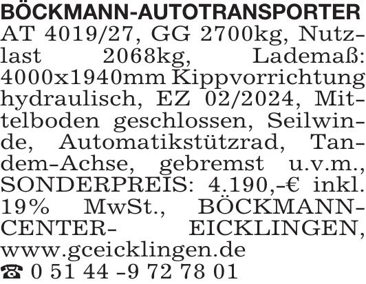BÖCKMANN-AUTOTRANSPORTERAT 4019/27, GG 2700kg, Nutz-