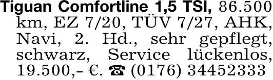 Tiguan Comfortline 1,5 TSI, 86.500km, EZ 7/20, TÜV 7/27, AHK,