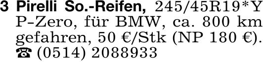 3 Pirelli So.-Reifen, 245/45R19*YP-Zero, für BMW, ca. 800 km