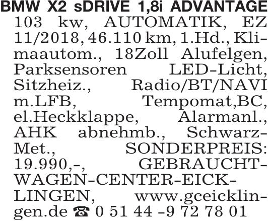 BMW X2 SDRIVE 1,8i ADVANTAGE