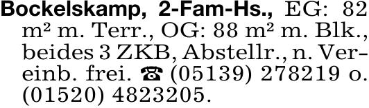 Bockelskamp, 2-Fam-Hs., EG: 82m² m. Terr., OG: 88 m² m. Blk.,