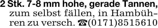 2 Stk. 7-8 mm hohe, gerade Tannen,zum selbst fällen, in Hambüh-