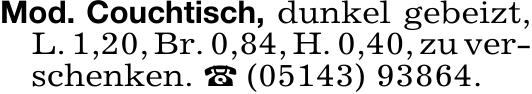 L. 1,20, Br. 0,84, H. 0,40, zu ver-