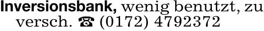 Inversionsbank, wenig benutzt, zuversch. (0172) 4792372