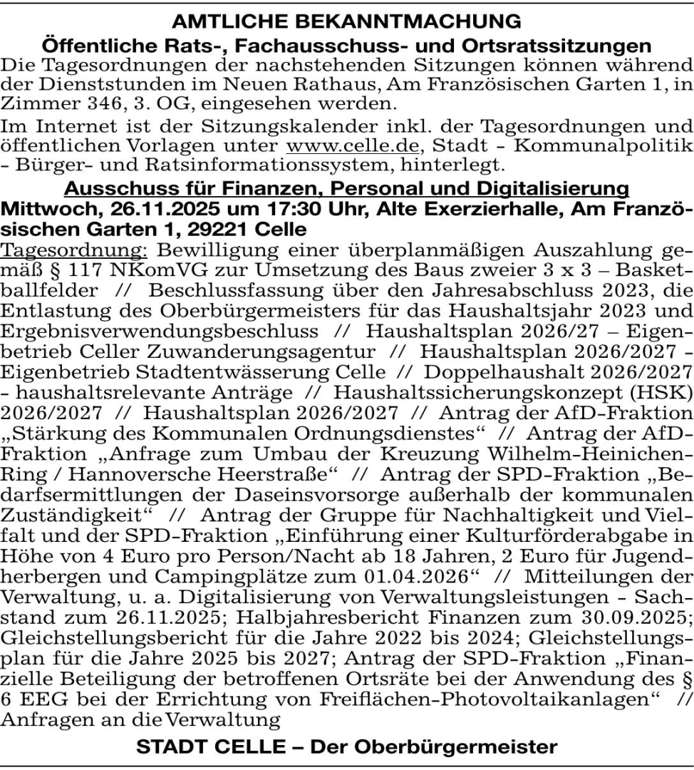 Erscheinungsdatum: Anzeige vom 24.11.2025 in der Rubrik "Amtliche Bekanntmachungen"