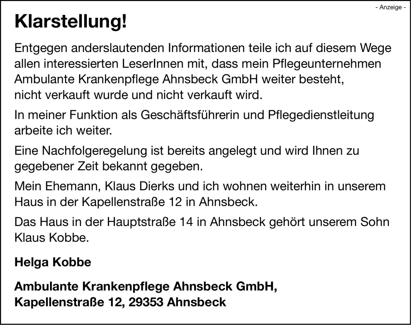 Ambulante Krankenpflege Ahnsbeck GmbH weiter besteht,