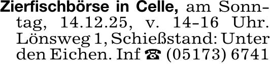 Zierfischbörse in Celle, am Sonn-