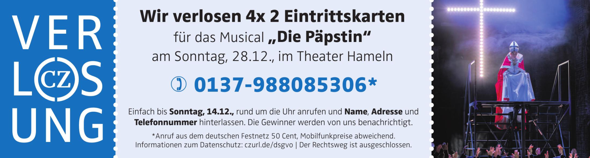 Telefonnummer hinterlassen. Die Gewinner werden von uns benachrichtigt.
