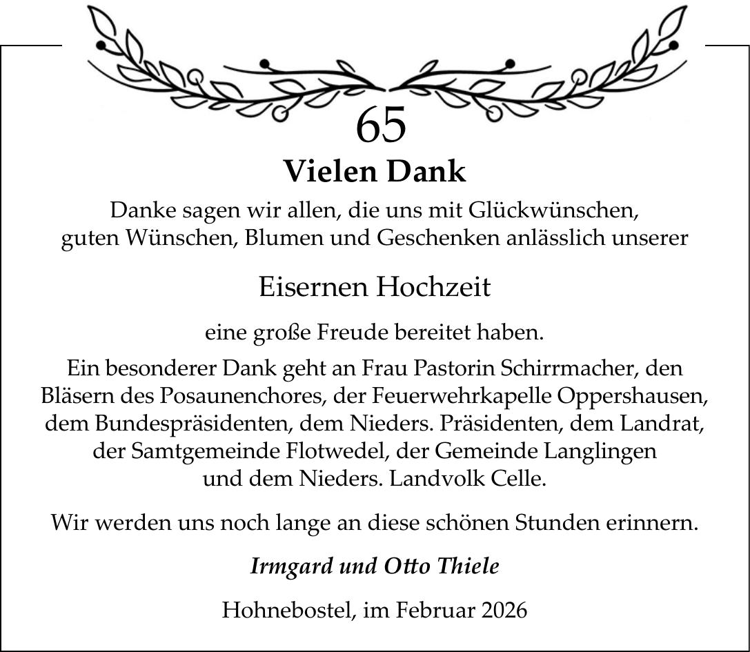 Erscheinungsdatum: Anzeige vom 14.2.2026 in der Rubrik "Danksagungen"