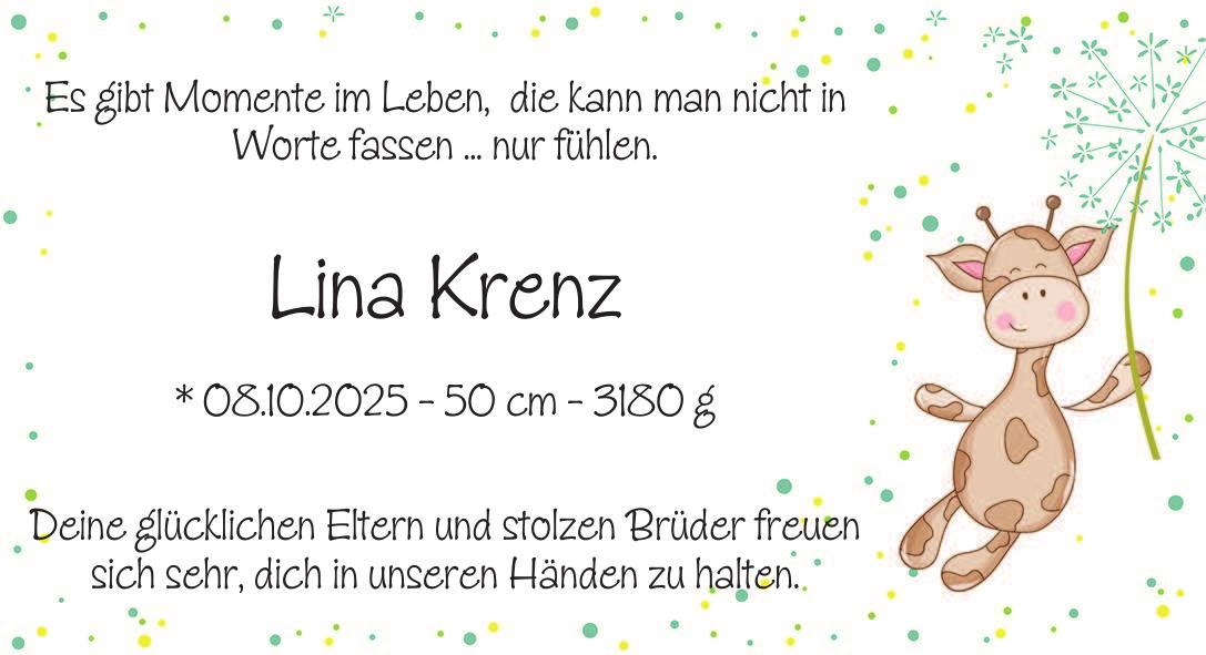 Anzeige vom 18.10.2025 in der Rubrik "Geburten"