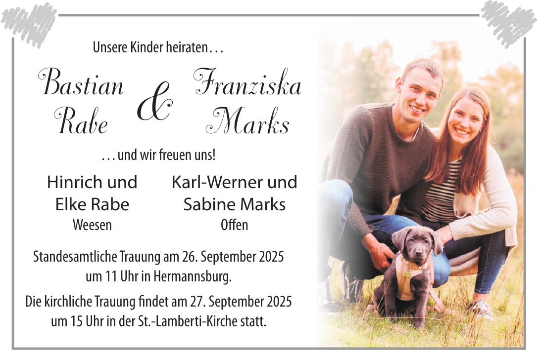 Erscheinungsdatum: Anzeige vom 26.9.2025 in der Rubrik "Hochzeiten"