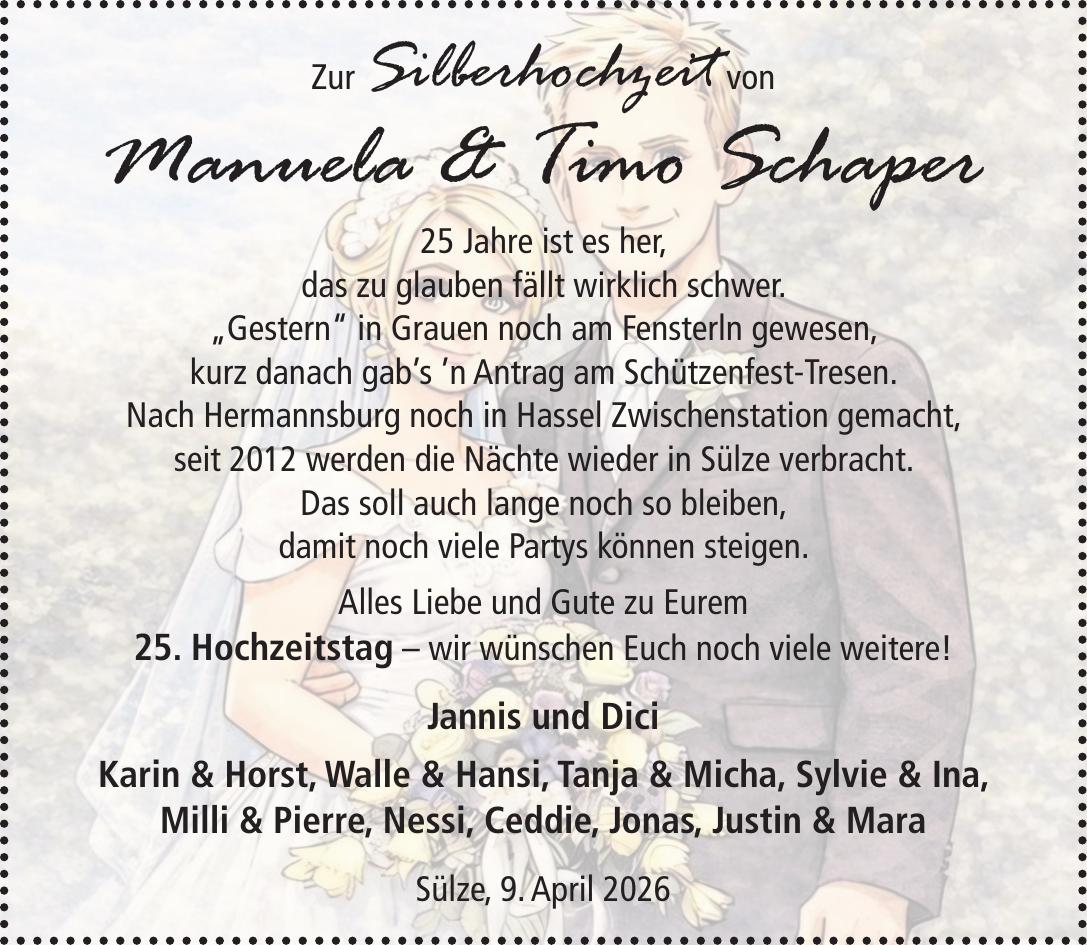 Zur Silberhochzeit vonManuela & Timo Schaper