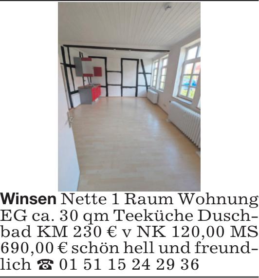 Winsen Nette 1 Raum WohnungEG ca. 30 qm Teeküche Dusch-