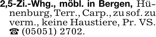 2,5-Zi.-Whg., möbl. in Bergen, Hü-