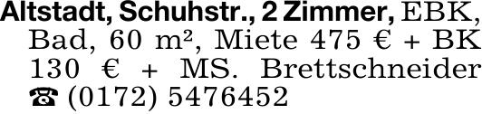 Altstadt, Schuhstr., 2 Zimmer, EBK,Bad, 60 m², Miete 475 € + BK
