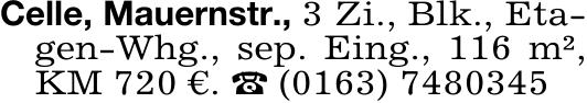 Celle, Mauernstr., 3 Zi., Blk., Eta-gen-Whg., sep. Eing., 116 m²,