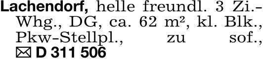 Lachendorf, helle freundl. 3 Zi.-Whg., DG, ca. 62 m², kl. Blk.,