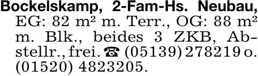 Bockelskamp, 2-Fam-Hs. Neubau,EG: 82 m² m. Terr., OG: 88 m²