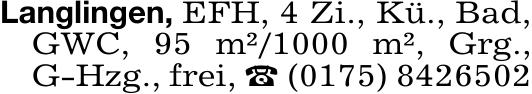 Langlingen, EFH, 4 Zi., Kü., Bad,