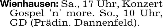 Wienhausen: Sa., 17 Uhr, KonzertGospel 'n' more. So., 10 Uhr,