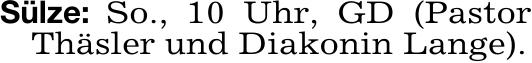 Sülze: So., 10 Uhr, GD (Pastor