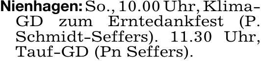Nienhagen: So., 10.00 Uhr, Klima-GD zum