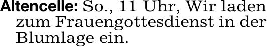 Altencelle: So., 11 Uhr, Wir laden