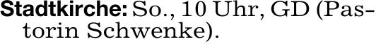 Stadtkirche: So., 10 Uhr, GD (Pas-
