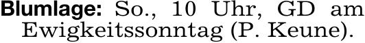 Blumlage: So., 10 Uhr, GD amEwigkeitssonntag (P. Keune).