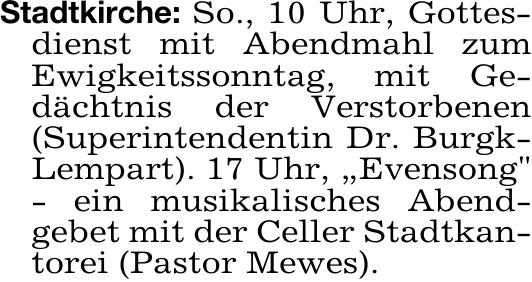 Anzeige vom 22.11.2025 in der Rubrik "Ev. luth. Landeskirche"