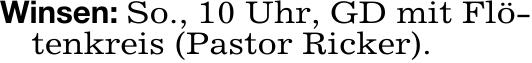 Winsen: So., 10 Uhr, GD mit Flö-tenkreis (Pastor Ricker).