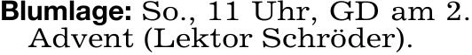 Blumlage: So., 11 Uhr, GD am 2.Advent (Lektor Schröder).