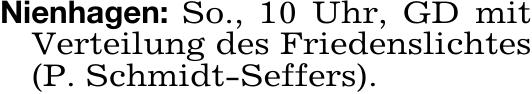 Nienhagen: So., 10 Uhr, GD mitVerteilung des Friedenslichtes
