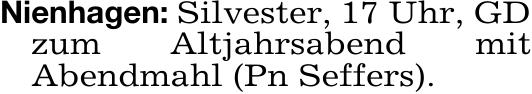 Nienhagen: Silvester, 17 Uhr, GD