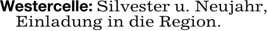Westercelle: Silvester u. Neujahr,Einladung in die Region.